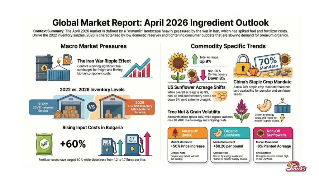 - Fuel, freight, and geopolitical instability are pressuring ingredient costs.